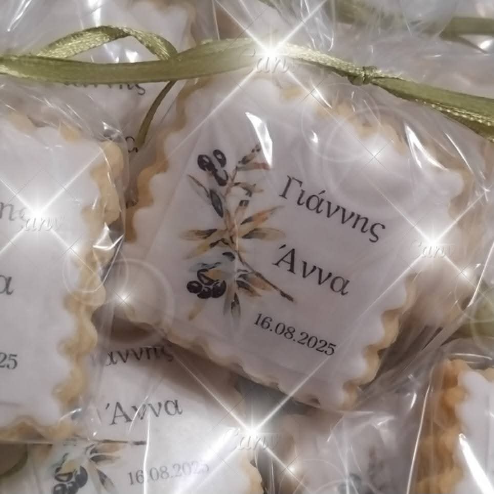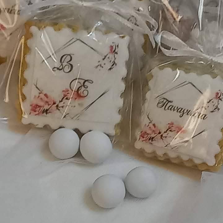 Πιστεύουμε πως κάθε γάμος κρύβει μια μοναδική ιστορία αγάπης και τα μπισκότα γάμου είναι ο πιο γλυκός τρόπος να την αφηγηθείτε.Τα βουτυρένια μας μπισκότα,ντυμένα με φίνα ζαχαρόπαστα και εκτύπωση υψηλής ποιότητας,γίνονται μπομπονιέρες,τρυφερά welcome gifts για τους καλεσμένους στο ξενοδοχείο ή στο τραπέζι αλλά και κομψή πινελιά στο sweet table σας.